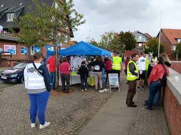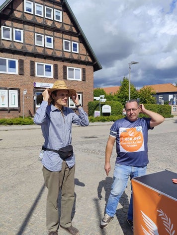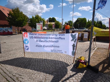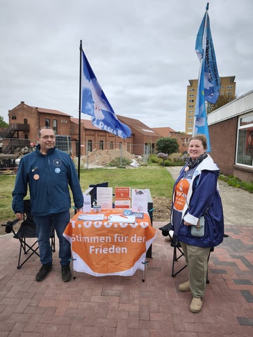 Die Unterschriftaktion „1.000.000 für den Frieden“, das Friedensbündnis Lüneburg, „Aufstehen Schwerin“ und die Friedensinitiative „Dreiländereck“ setzten sich an diesem Tag zusammen mit uns ein.