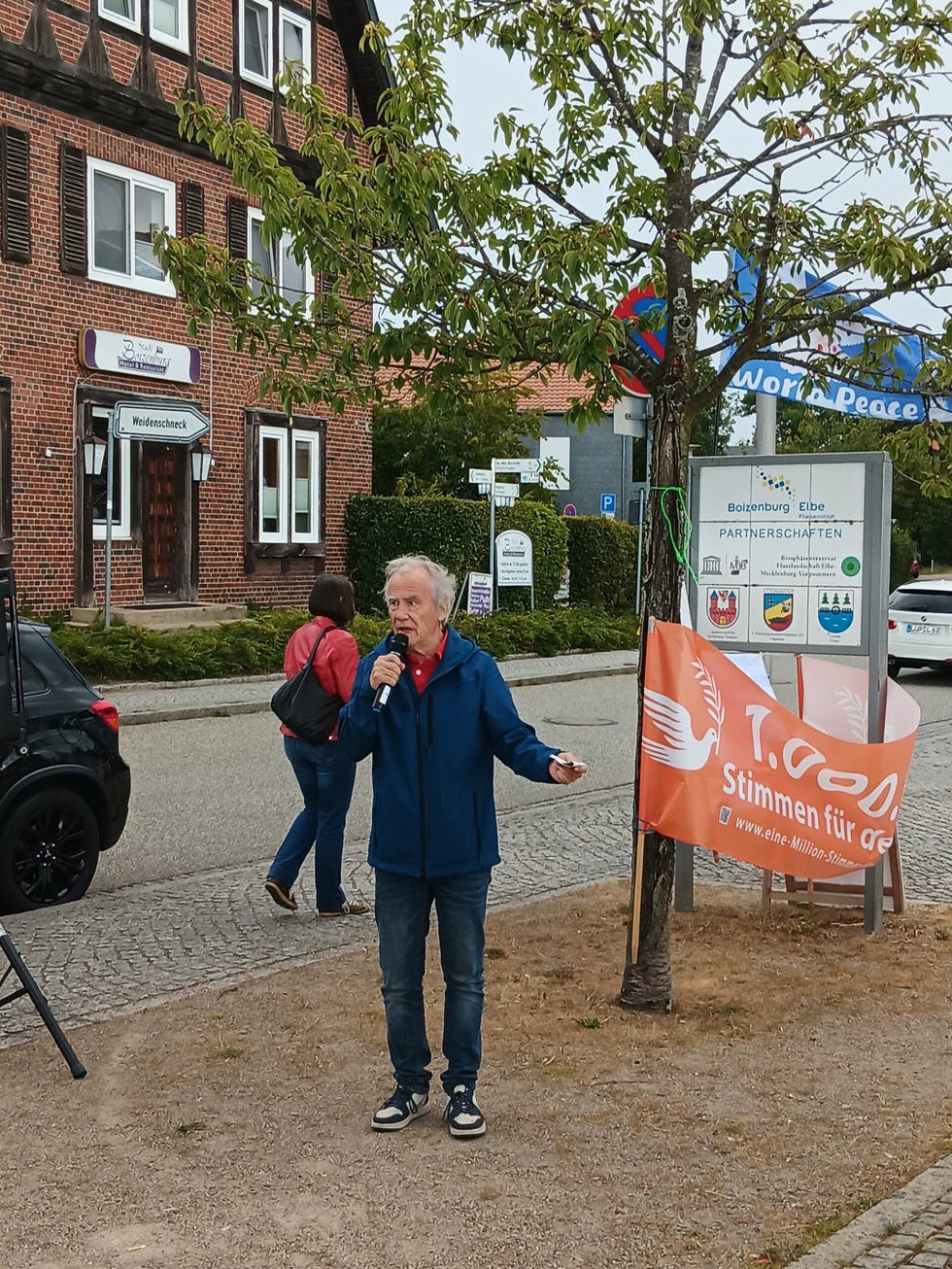 Am 23.08.2025 versammelten sich in Boizenburg/Elbe (M-V) zahlreiche Initiativen zu einer kraftvollen Friedenskundgebung, die tiefe Emotionen weckte.