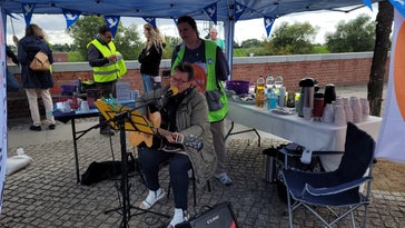 Liedermacherin Bea aus Rostock begleitete uns mit Friedensliedern und interessanten Berichten.